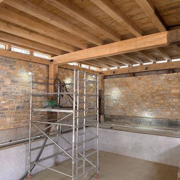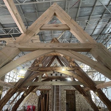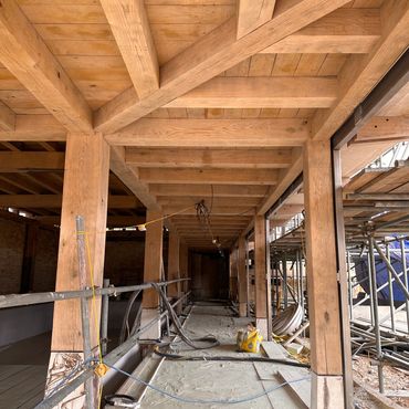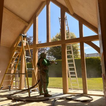During the building process of an Oak framed structure its inevitable that water and tannin stains will appear, due to the structure not being water tight which is near impossible here in the UK! We can Blast Clean these unsightly stains, returning the Timber back to its milled look.